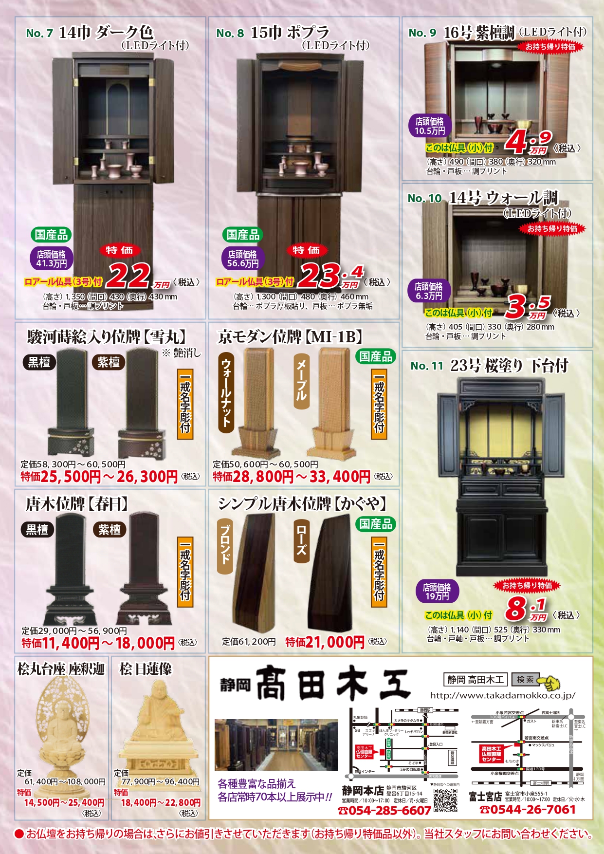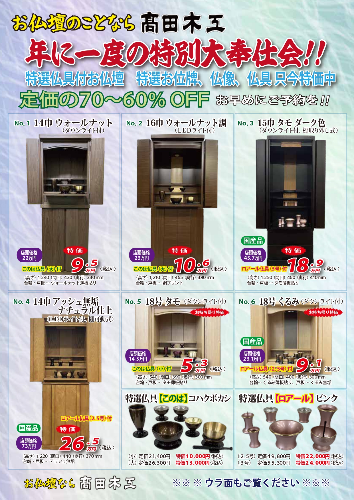 静岡高田木工|お仏壇の製造直販・通販|安い・お買い得 | ネットチラシ | ネットチラシ(2025年年に1度の特別大奉仕会)